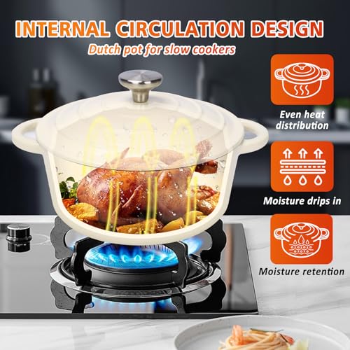 - 🔥 【8-Piece Cast Iron Cookware Set】 Upgrade your kitchen with this versatile and durable enamelled cast iron cookware set! Designed for even heat distribution and excellent heat retention, this set ensures perfectly cooked meals every time. Whether you're slow-cooking a hearty stew, searing a juicy steak, or baking artisan bread, this cast iron Dutch oven and pan set delivers outstanding results across all hob types, including induction, gas, electric, and ceramic.
