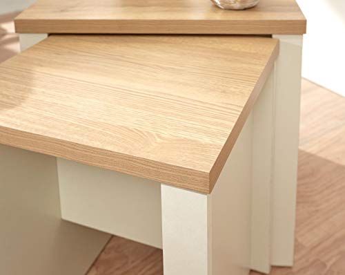 GFW Lancaster 2 Wooden Coffee Suitable For Living Room Hallway kitchen Or Office Nesting Tables Perfect For Storage Cream With Contrast Oak Top, Wood, 50 x 49 x 45 cm