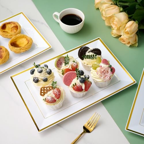 - 【Recyclable & Reusable】Our pack of 6, white and double gold rimmed plastic serving trays and serving platters provide a touch of effortless sophistication to any occasion! Make your food look fancy on the table while avoiding the hassle of clearing up!