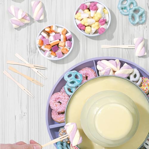 Giles & Posner EK3428GSPP Chocolate Fountain – 3 Tier Electric Cascading Fondue Set with Hot Melting Pot Base, Party Dip & Share Machine, Set Includes 2 Food Trays & 100 Bamboo Skewers, 70-90W, Purple