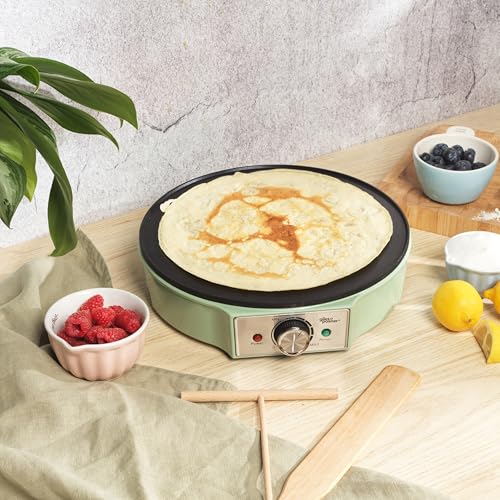 Giles & Posner EK6223GSGR Crepe Maker – Electric Pancake Hotplate, Non-Stick Cooking Surface, Large 30cm (12”) Plate, Adjustable Temperature Control Knob, Batter Spreader & Spatula, 1200 W, Green