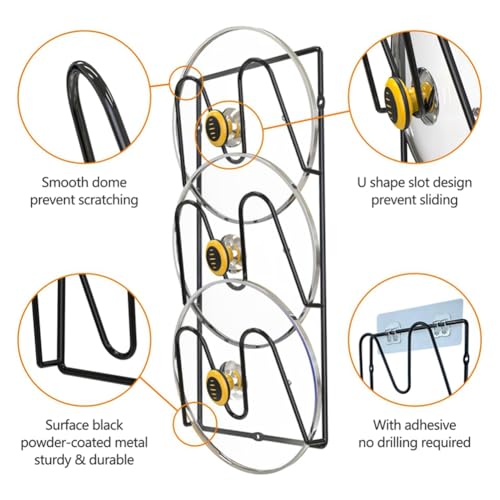 - Space-saving and efficient: Organize your pot lids inside the cabinet door or , reducing clutter on your kitchen countertop.