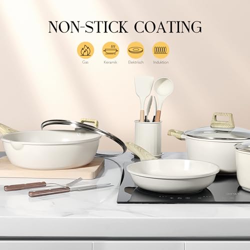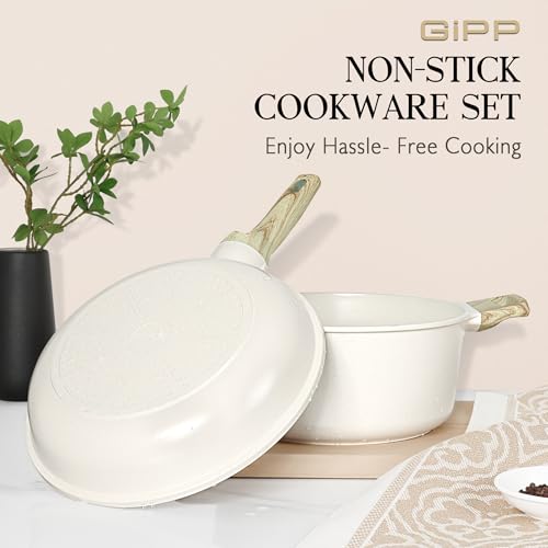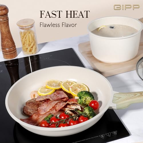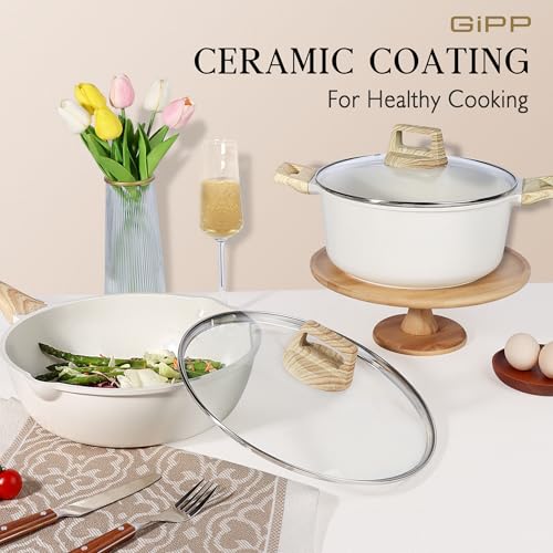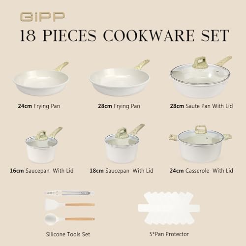 GiPP 18-Piece Nonstick Cookware Set,PFAS-Free Ceramics Induction Pots and Pans with Lids, Frying Pans, Casserole, Saucepans, Silicone Utensils & Pan Protectors, Compatible All