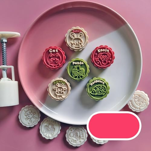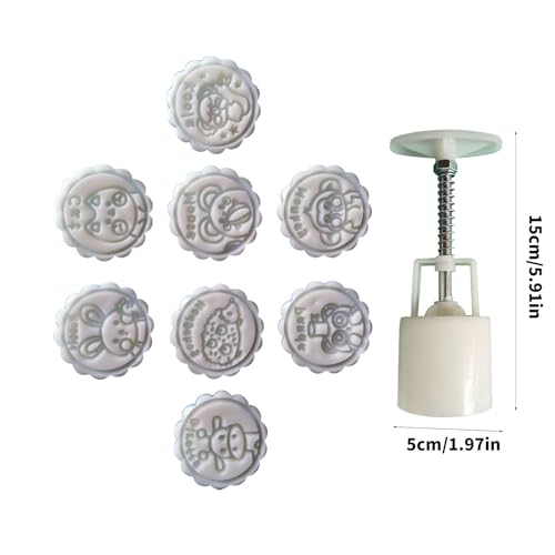 Gissroys Functional 50 g Round Moon Cake Mould Pastry Press with Beautiful Animal Stamp for Baking and Festival Dessert Baking Tool