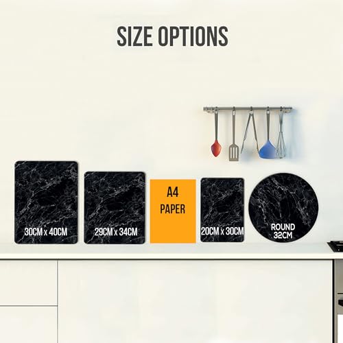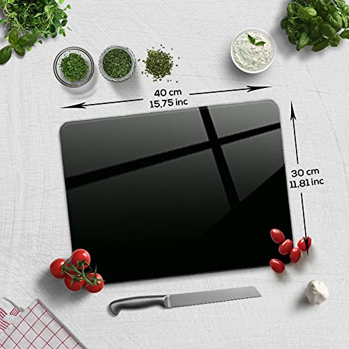 Glass Chopping Board 40x30cm : Plain Black, Worktop Saver for Kitchens – Durable, Hygienic Glass Worktop Savers – Easy-Clean, Tempered Glass, Scratch-Resistant, Heat-Proof