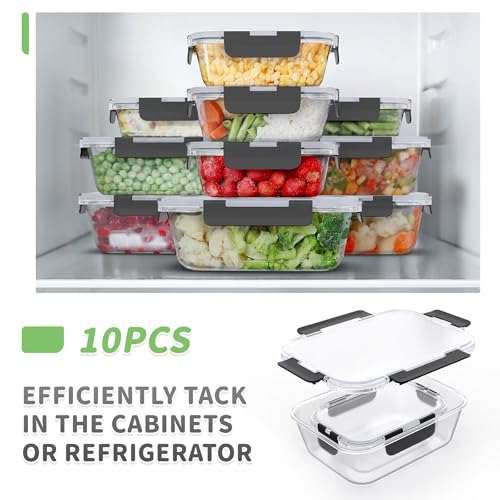 Femora Glass Food Storage Containers 10 Pack, Glass Meal Prep Containers with Snap Lock Leakproof Lids, Reusable Microwave safe BPA-free Lunch Boxes (10 Containers & 10 Lids) 1040ml & 370ml…
