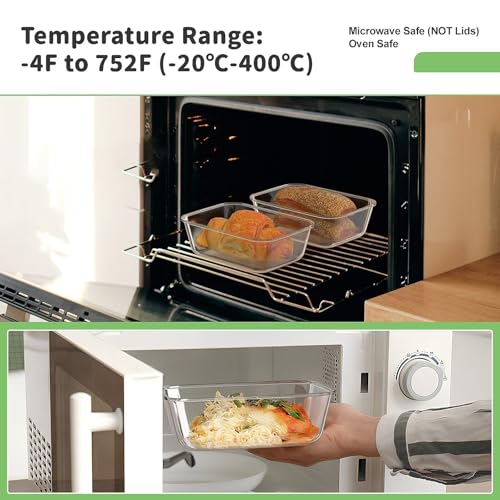 - 🍚【 High quality materials 】Our glass storage containers are made of high-quality borosilicate glass and can withstand temperatures ranging from -20 º C to 400 ° C. Glass containers do not absorb stains or odors, making them the perfect choice for acidic foods, making your food fresher. (Note: Before placing in the microwave/oven, please remove the lid first.)