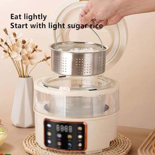 - 【Starch-Removing Rice Cooker with View】: Cook low-carb rice in the reinforced glass inner pot. Monitor progress without lifting the lid—seals steam for fluffy results (up to 6 cups rice or 2.5L soup)