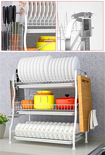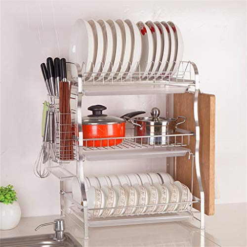 GLJTUO Dish Rack Dish Drying Racks With Drainboard Utensil Holder Knife Holder Attachment Stainless Steel For Kitchen Cutlery Holder 3 Tier