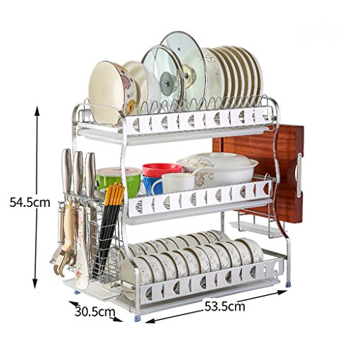 GLJTUO Uk 3 Tier Large Dish Drainer Drying Rack Cutlery Rack Multifunction Kitchen Shelves With Drip Tray And Cutlery Holder 304 Stainless Steel