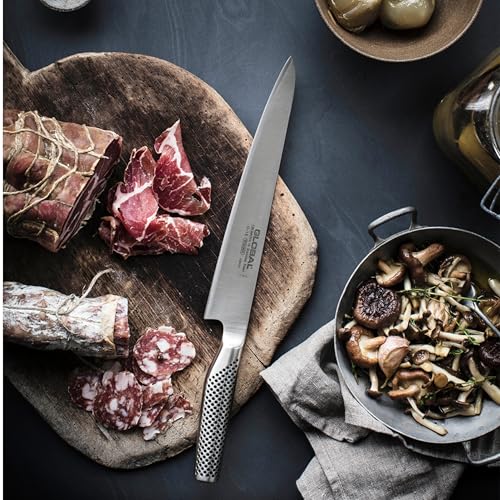 • PREMIUM JAPANESE QUALITY: All GLOBAL knives are crafted in Japan from ultra hard, ice-tempered Cromova 18 high carbon stainless-steel. These blades will hold a cutting edge for a long time, are easy to resharpen and resist rust and corrosion.