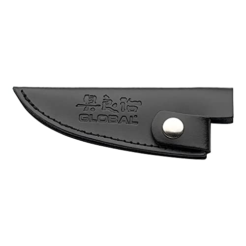 Global Michel Roux Jnr Selection 11cm All-Purpose Knife, CROMOVA 18 Stainless Steel, with Leather Sheath, Silver