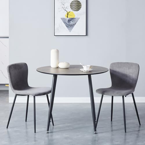 GOLDFAN Small Round Dining Table 80cm Industrial Style Wooden Kitchen Table Grey with Sturdy Metal Legs Modern Dining Room Table for 2-4 People (112-Grey, 80cm*80cm)