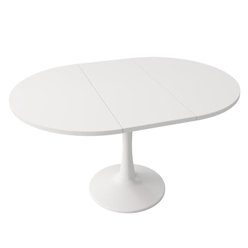 Goldicoo Contemporary Round Extendable Dining Table, White MDF, 100-140 x 100 cm, Space-Saving Design, Seats 4-6 Individuals
