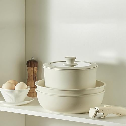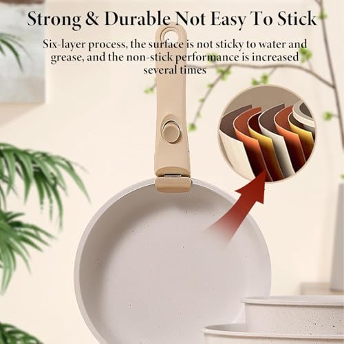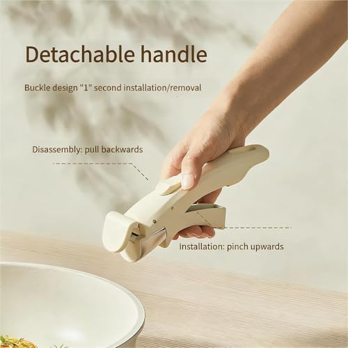 - 【Removable Ergonomic Handle】As a classic detachable handle pan set and pan set with detachable handles, it comes with an ergonomic handle that locks securely during cooking for stable use. The handle detaches easily after cooking, allowing you to transfer pots/pans directly to the table as servingware or store them without extra bulk, boosting convenience in daily use