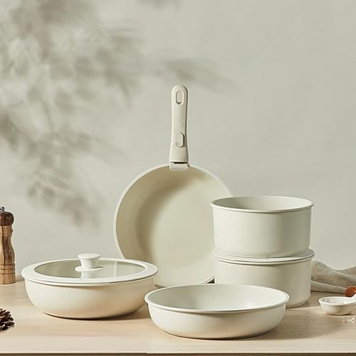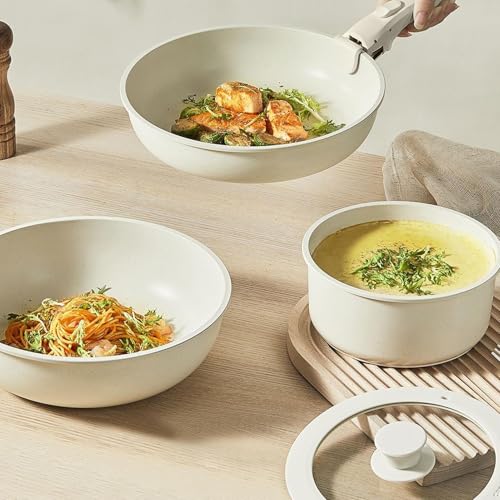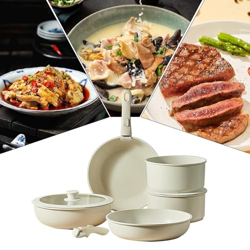 Gourmetific Cookware Sets, Stone Nonstick Cookware Set, Safe Panpots Sets | Safe Pans Pots Set | Nonstick Cream White Detachable Handle for Cookingfrying Pans Cooking Pot Set for Frying Pans