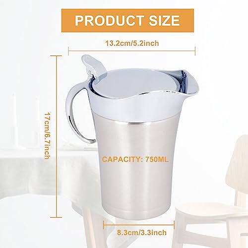 Gravy Boat,Stainless Steel Gravy Boat,Double Sauce Jug with Lid Keeps Food Warm,Thermos Jug Insulated Gravy Jugs for Gravy,Custard,Cream,Sauce,Dishwasher Safe, Dinner Party (750ml)