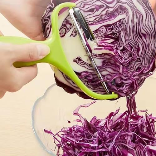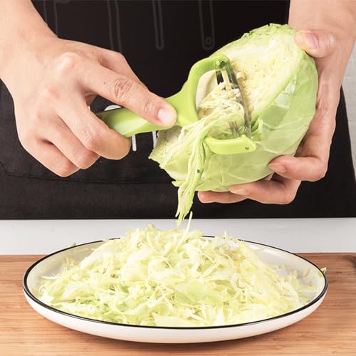 - VERSATILE DESIGN: Multi-functional kitchen tool for peeling, grating, and slicing various vegetables and fruits, especially suited for cabbage and potatoes