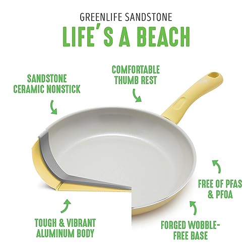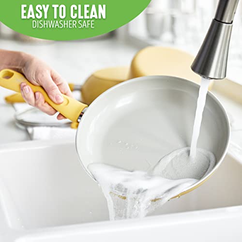 GreenLife Soft Grip Healthy Ceramic Nonstick 15 Piece Kitchen Cookware Pots and Frying Sauce Saute Pans Set, PFAS-Free with Kitchen Utensils and Lid, Dishwasher Safe, Yellow