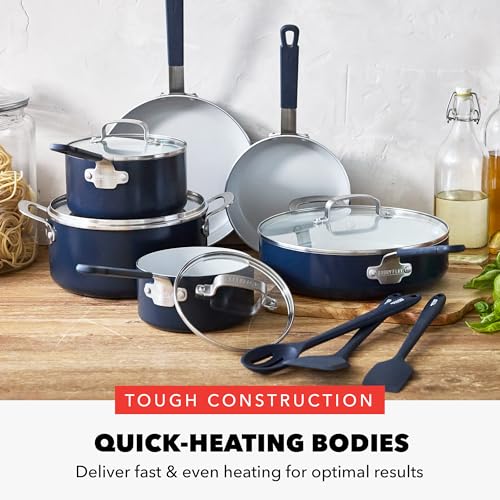 GreenPan Bobby Flay 13 Piece PFAS and PFOA Free Saucepans and Pans Set, Professional Grade Non-Stick Ceramic, Induction Friendly, Stay Cool Silicone Handle, Safe