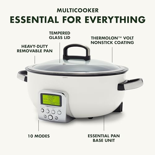 GreenPan Elite Essential Smart Electric 5.6L Skillet Pot, Easy Sear Saute Stir-Fry & Rice Cooker Presets, PFAS-Free Healthy Ceramic Non-Stick, Dishwasher Safe Parts, LED Display, Cloud Cream