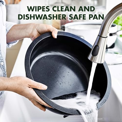 Features Thermolon Volt, a ceramic non-stick coating specially designed to withstand the strain of modern appliances – this diamond-infused ceramic non-stick is extra tough, cleans easily, and makes any meal healthier