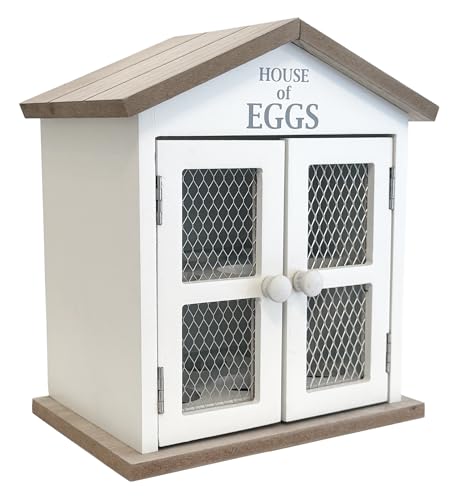 - DESIGN: Charming house-shaped egg storage cabinet with cream-coloured finish and brown roof trim, featuring a rustic farmhouse aesthetic. Stylish kitchen egg cabinet.