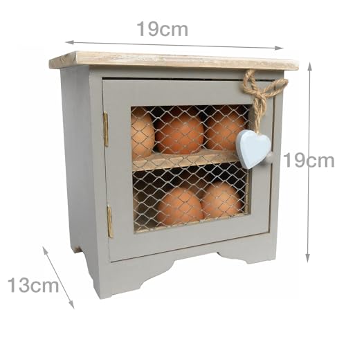 GreyZouq Wooden Country Kitchen Egg Cabinet. Egg Rack with Capacity to hold 12 Eggs. Ideal storage rack with farmhouse rustic effect. Worktop organizer. (Grey with Blue Heart)