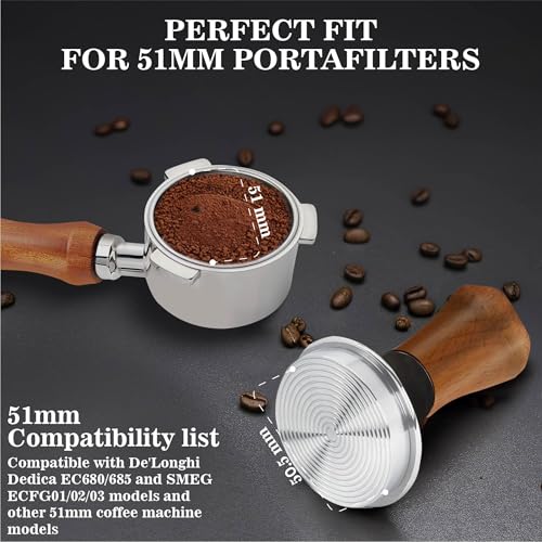 - ⚙️ [Compatibility] – Tested compatibilty with 51mm coffee portafilters. Few compatible machines are De'Longhi Dedica EC680/685 and SMEG ECFG01/02/03 models and more