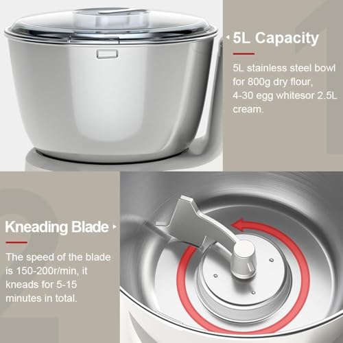 - Easy to clean: Crafted from 304 stainless steel, both the basin and kneading blade are durable, hygienic, and easy to clean. The stainless steel material ensures even mixing and kneading, resulting in well-developed and evenly mixed dough every time.