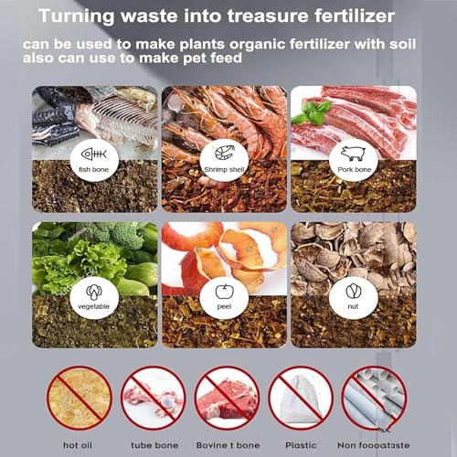 - 【Recyclable and Noise Reduction Design】 Owning this composter allows you to recycle food waste efficiently while saving time and space, thus reducing high garbage disposal costs. High-quality sound insulation materials ensure noise reduction, operating at about 44-46 decibels, quiet without disturbing anyone.