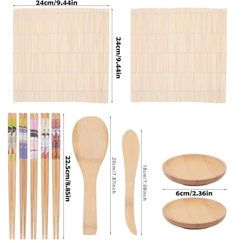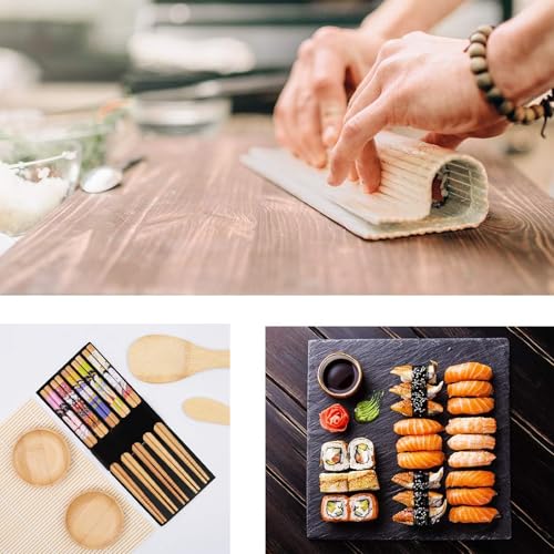 - 【Package Includes】:The sushi making kit includes 2 bamboo sushi mats, 5 pairs of chopsticks, 1 rice shaker, 1 rice paddle, 2 dipping sauce plates, suitable for gatherings, outings, lunch, etc. It is simple and convenient.
