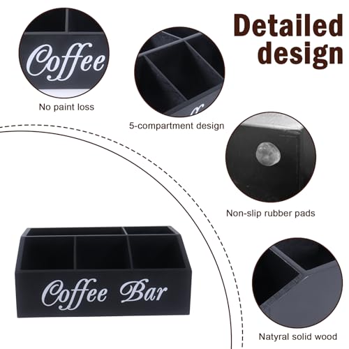 Gzsekken Coffee Station Organizer 5 Compartments Coffee Condiment Storagec Wooden Kitchen Storage Shelf for Sugar, Creamer, Tea Station Coffee Bar Accessories Caddy for Home,Office-Black