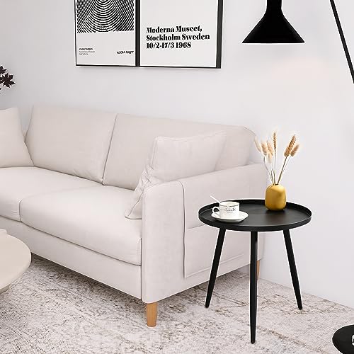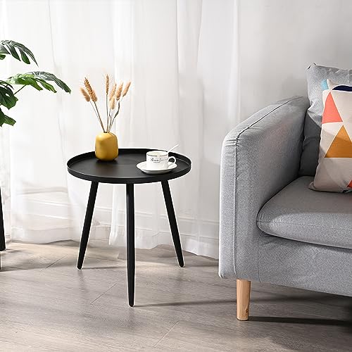 H JINHUI Black Round Side Table, Round Sofa Coffee Table, Modern Simple Metal Frame End Table, Bedside Table Nightstand for Small Spaces, Living Room, Bedroom, Balcony, 42(D) x 45(H) cm