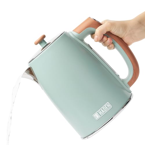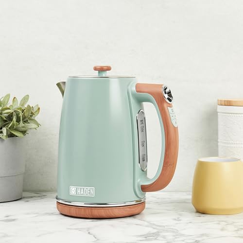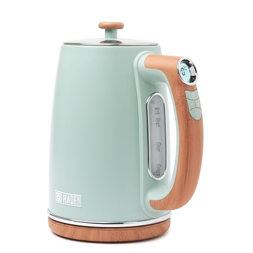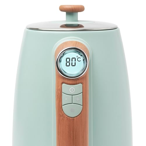 Haden Dorchester Temperature Control Kettle – 3000w Rapid Boil, Wood Effect Finish, 1.7litre – Green Stainless Steel Kettle – Overheat Protection – Digital Display