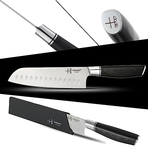 hajegato 7" Super Sharp Chef Knife – Professional Cook Kitchen Knife Set – Japanese Santoku Knives – German High Carbon Stainless Steel EN1.4116 – with Knife Sharpener Finger & Blade Guard Gift Box……