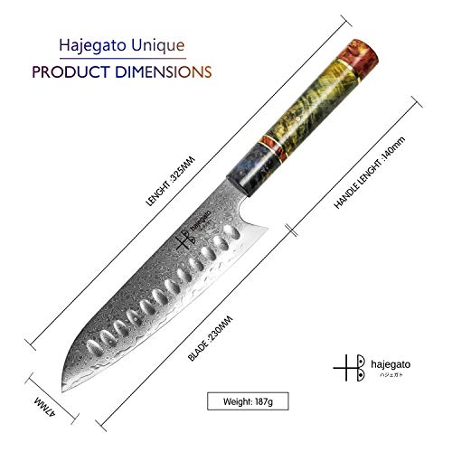 hajegato Professional Japanese Chefs Kitchen Knife Unique Santoku 7" Vg10 67 Layers Damascus Steel Knive with Sheath