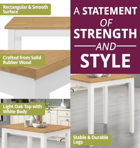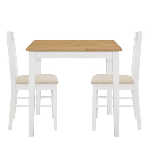 - PREMIUM QUALITY SOLID WOOD | Crafted from solid rubber wood and MDF, this premium dining room set includes a sturdy table and chairs set 2 with cream seat pads. It's perfect for modern dining room sets. Table: H75xW80xD60cm, Chairs: H89xW41xD46cm.