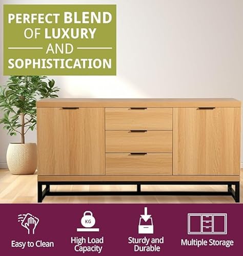 - SLEEK & MODERN DESIGN | Combining form and function, the light oak sideboard in metal based offers durable construction and a timeless look, serving as one of the most versatile additions to your living room cabinets setup.
