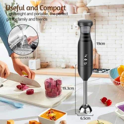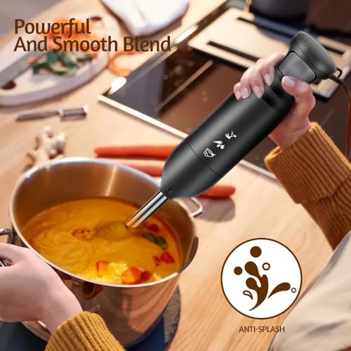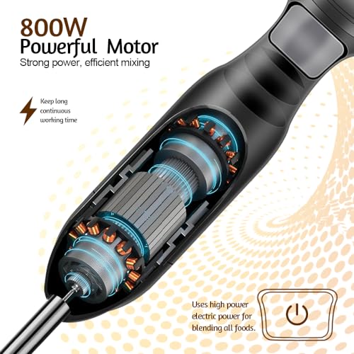 - High Power & More Effective: The hand blender for kitchen is featured with 800 watt power, which makes blending task faster with low noise. You multi choices to prepare baby food, milkshake, smoothies, soups, sauces, purée, and more. Speed up food preparation and give you a unique cooking experience. TURBO function for maximum speed and a more homogeneous mixture.