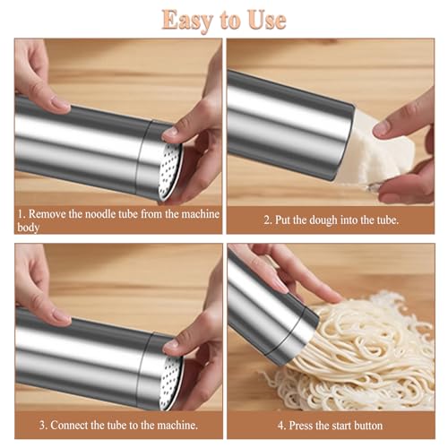 - 【Removable for Cleaning】The electric pasta maker's pasta tube and molds are made of safe stainless steel, both of which are removable for easy cleaning. The noodle mold can also be disassembled and stacked with the body for storage, saving storage space.