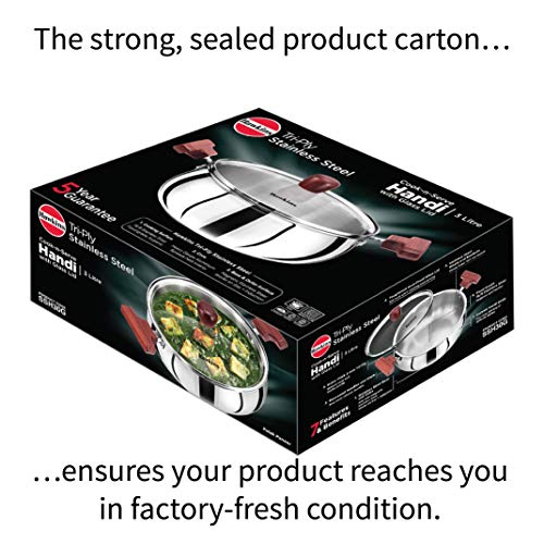 Hawkins 3 Litre Cook n Serve Triply Stainless Steel Handi with Glass Lid, Induction Sauce Pan, Biryani Handi, Silver
