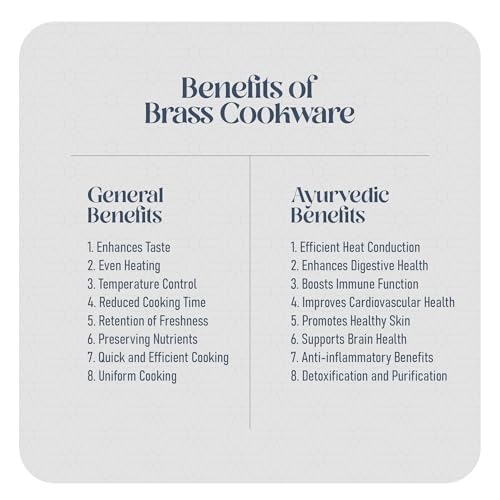 - Health Benefits: Cooking in brass offers potential health benefits as trace amounts of essential minerals like zinc and copper may be released into your food, enhancing its nutritional value.