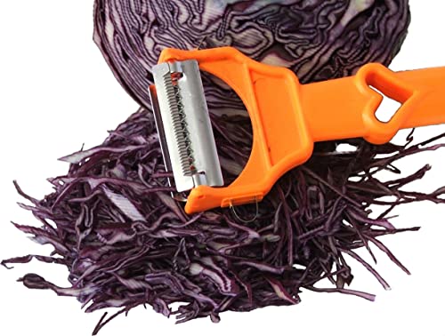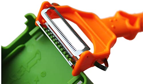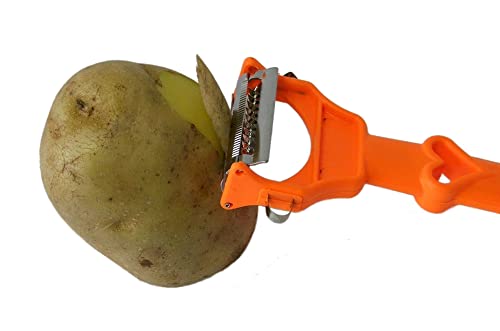 • MULTITALENT: With this 3 in 1 kitchen helper you can easily peel fruits and vegetables and then cut them into slices, strips or sticks. Suitable for both right and left handed users.