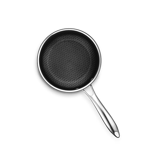 - Patented hybrid technology utilises 'tri-ply construction' – aluminum between two layers of stainless-steel, laser-etched with our hexagonal ridges featuring a protected nonstick surface in the valleys to deliver the searing power of stainless steel, the durability of cast-iron and convenience of nonstick.