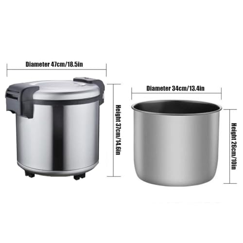 High-Efficiency Heat Preservation Rice Cooker, Commercial Rice Cooker, Non-Stick Inner Pot, Stainless Steel, Large Capacity 23L, Suitable for Restaurants/Canteens/Households,Silver