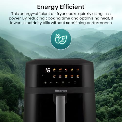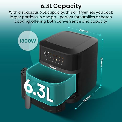 Hisense 6.3L Air Fryer – 1800W Energy-Saving Colour Touch Display Cooker with 10 Cooking Functions – Fries, Chicken, Steak, Veggies, Grill, Fish, Defrost, Egg tart, Cake,Pizza