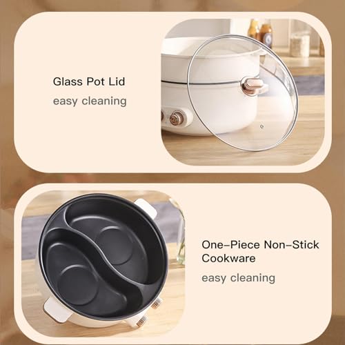 HJXBD888 Hot Pot Cooker, Double control switch, Automatic Power Cut-Off Hot Pot Electric Hotpot Hotpot Pot Electric, Suitable for Small Parties (with 2 Leaky Nets),7.5L