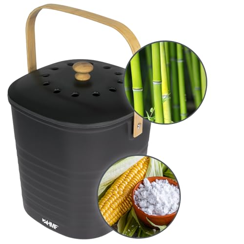 HMF Sustainable Organic Kitchen Waste Bin, Odour-Proof Compost Bin with Lid, 6 Litres, Black (3780-6L-02)