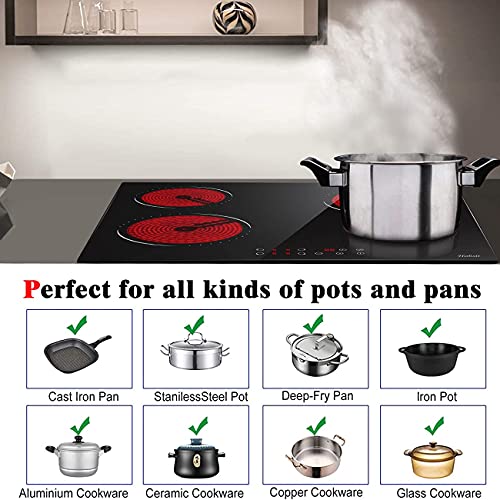 - 【6000W High Power Electric Hob 】Four zones Ceramic Hob from 1 to 4–1800W, 1200W, 1800W, and 1200W, with independent touch control panel, heat faster, more energy-efficient and low-noise.